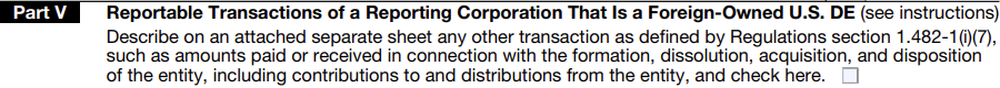 Part V covers transactions between the reporting corporation and the related party that didn’t involve a direct cash payment. These include: