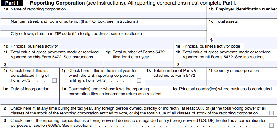 - Foreign shareholder owning 25% or more of the reporting corporation
